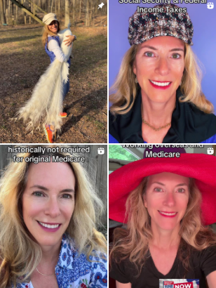 My face is a big part of my “Medicare Mama” brand—my social media followers know me from my videos, so a photo of me was imperative. The colors are the colors of the Medicare ID card.
